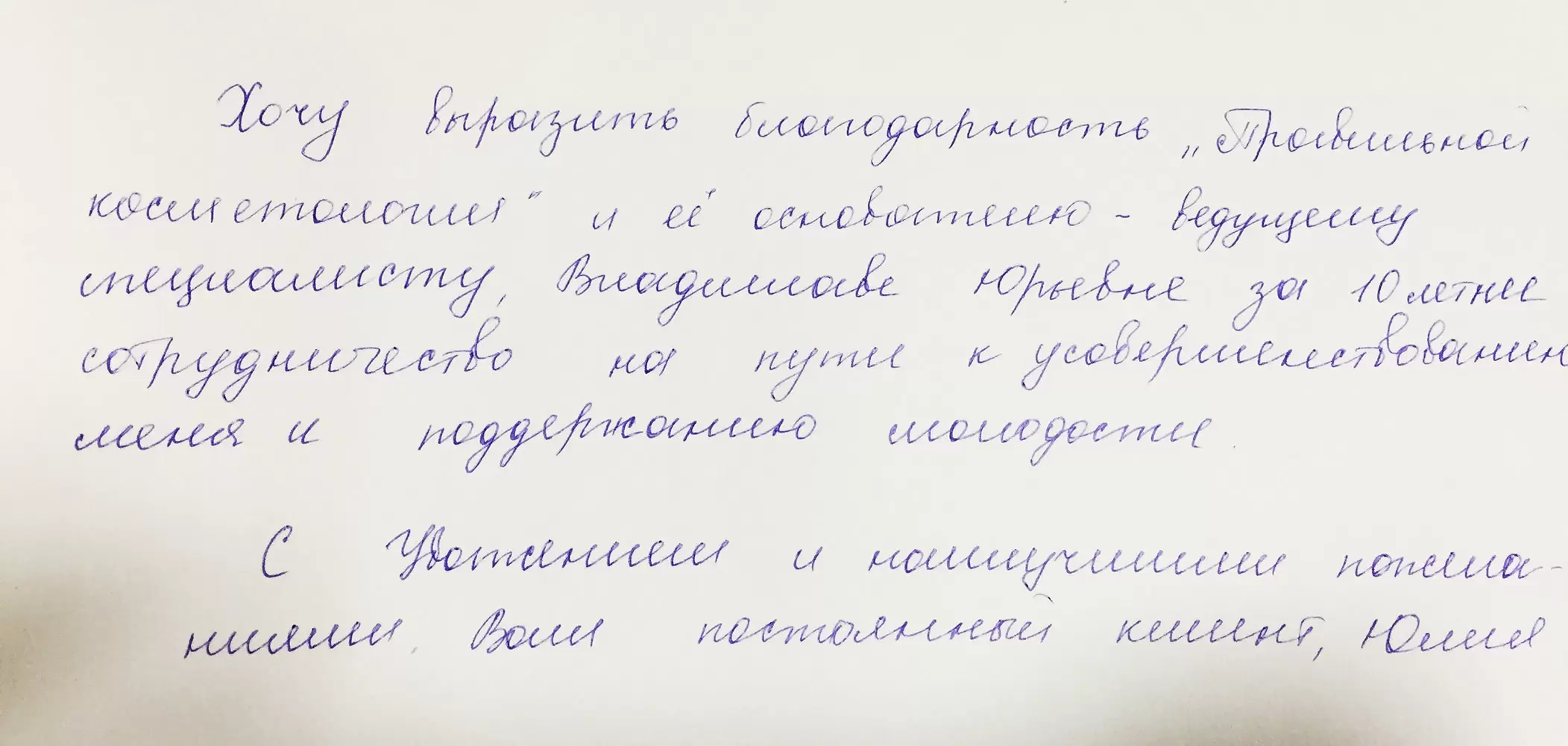 Для меня Правильная косметология сыграла важную роль в жизни. Со школы были жуткие проблемы с кожей лица, высыпания, гнойники, глубокие следы от них... Как вспомню, плакать хочется. Попав в руки Владиславы Юрьевны, я с каждым посещением наблюдала улучшения состояния кожи. В итоге грамотно проведенное лечение дало отличный результат. Безмерно благодарна! Успехов вам и процветания!