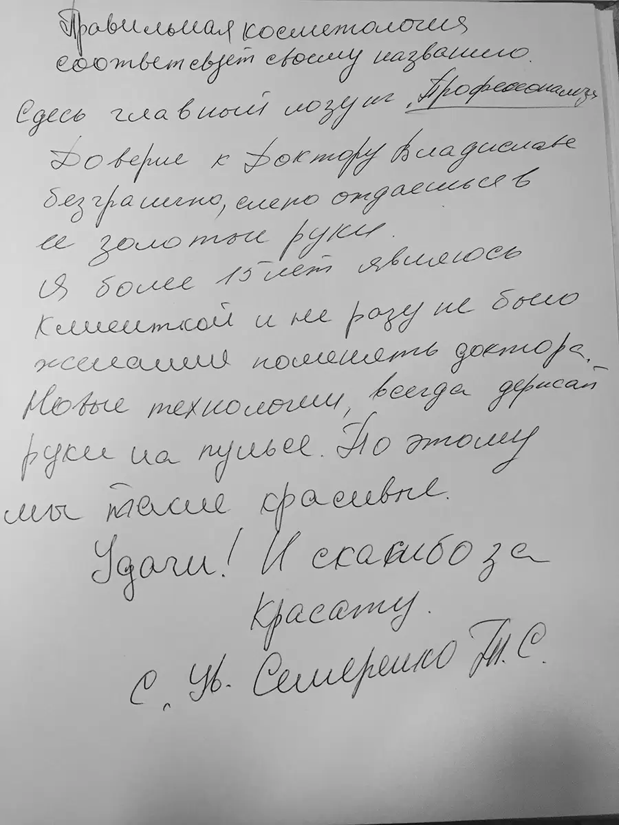 Хожу в Правильную косметологию много лет. Всегда довольна результатом, а главное ценю внимание и комфорт. За эти годы существенно улучшилась кожа и выгляжу лучше, чем 5 лет назад. Желаю дальнейшего процветания!