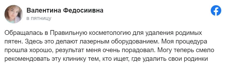 Обращалась в Правильную косметологию для удаления родимых пятен. Здесь это делают лазерным оборудованием. Моя процедура прошла хорошо, результат меня очень порадовал. Могу теперь смело рекомендовать эту клинику тем, кто ищет, где удалить свои родинки