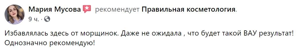 Избавлялась здесь от морщинок. Даже не ожидала , что будет такой ВАУ результат! Однозначно рекомендую!
