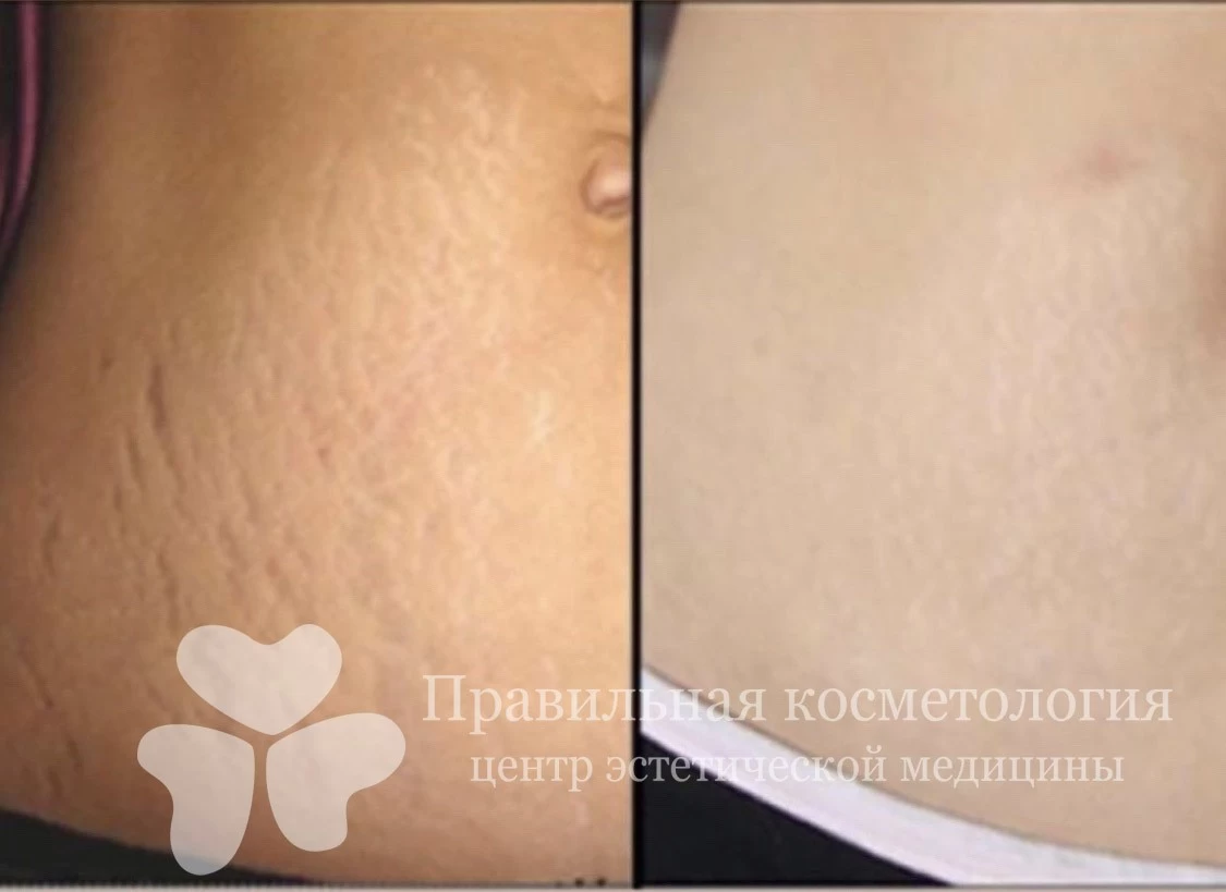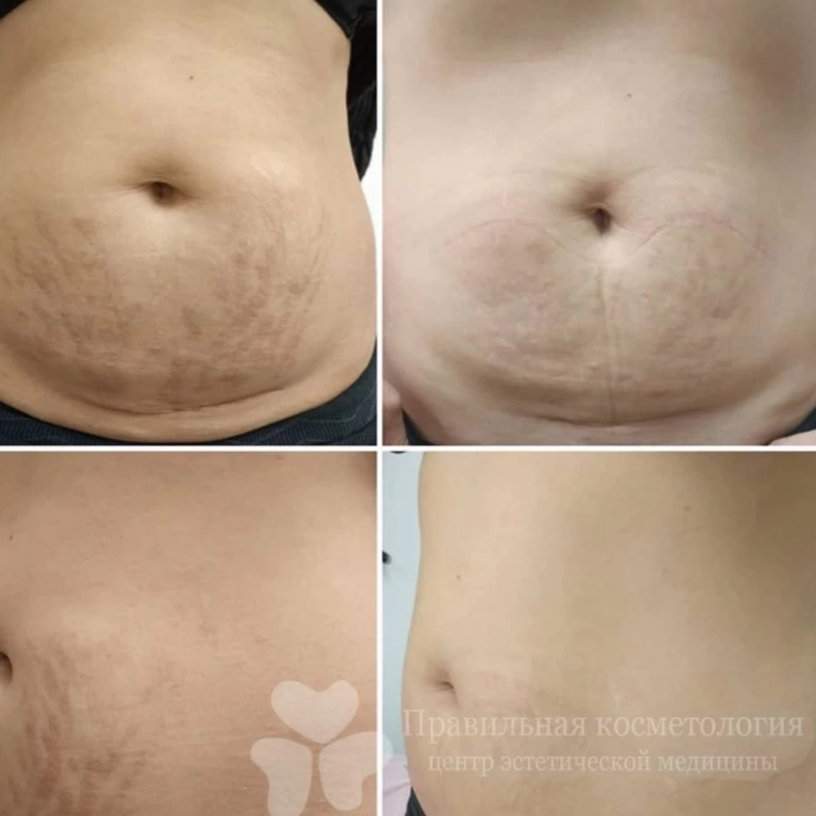 To do this, we usually combine laser resurfacing of stretch marks with other methods of treatment, such as plasma lifting, needle radiolifting and injections of various drugs.