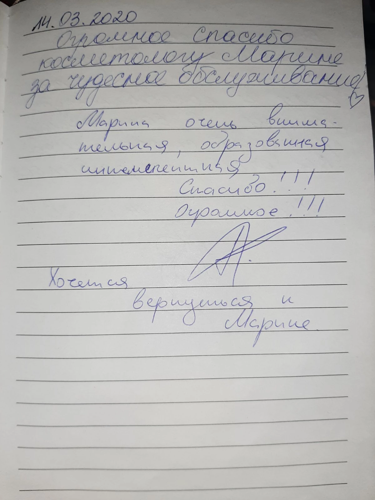 Порекомендовали Правильную косметологию, после посещения которой я осталась очень довольна результатами. Найти хорошего косметолога в наше время — большая удача, речь идет именно о специалистах с медицинским образованием, потому как инъекционные методики должны проводиться только профессионалами. Теперь у меня есть место, где я могу довериться косметологам! Спасибо огромное!