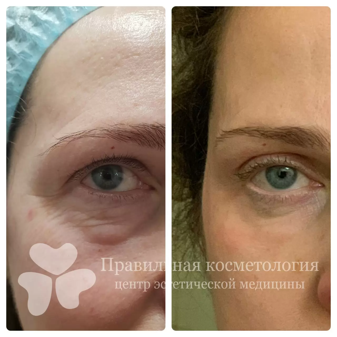 Прекрасные результаты мы получаем при сочетании с лазерным омоложением PANDA EYE, мезотерапией глаз, безоперационным лифтингом век и введением PRP плазмолифтинг.
